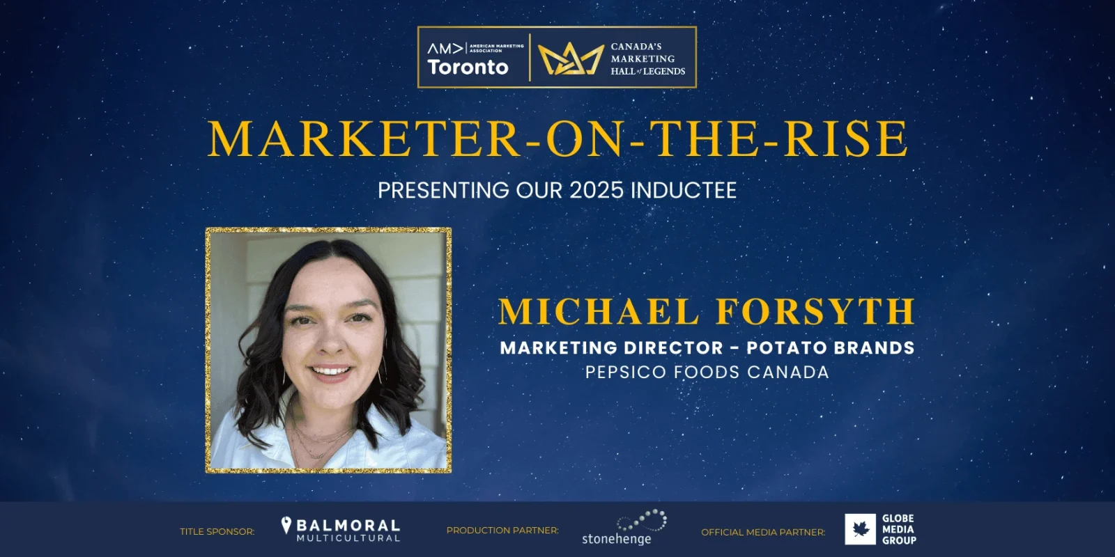 Michael Forsyth recognized for progressive marketing at PepsiCo TORONTO, March 31, 2025 — Canada’s Marketing Hall of Legends is proud to announce Michael Forsyth, Marketing Director, Potato Brands at PepsiCo Foods Canada, as the 2025 Marketer-on-the-Rise. The Marketer-on-the-Rise award celebrates Canada’s top up-and-comers — the next generation of influential marketing leaders. The award recognizes emerging … Continue reading Canada’s Marketing Hall of Legends announces 2025 Marketer-on-the-Rise